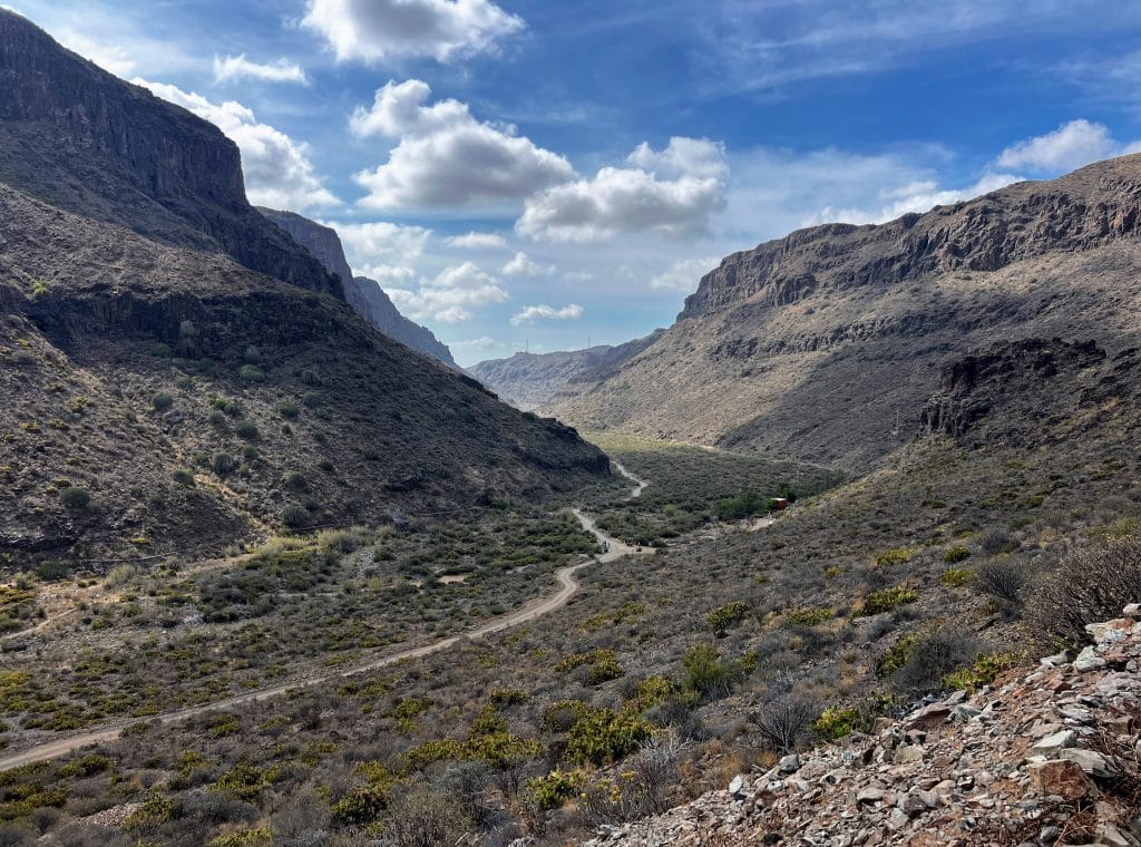 Inmersos en la Caldera de Tirajana, coincidimos en la semejanza con el Barranco de Tenegüime, al noreste de Lanzarote. Ambos comparten ese aire de grandeza mineral y de paso hacia la altura: Tenegüime, antesala de las Peñas del Chache, y la Caldera de Tirajana, preludio del Pico de las Nieves, techo de la isla canariona.