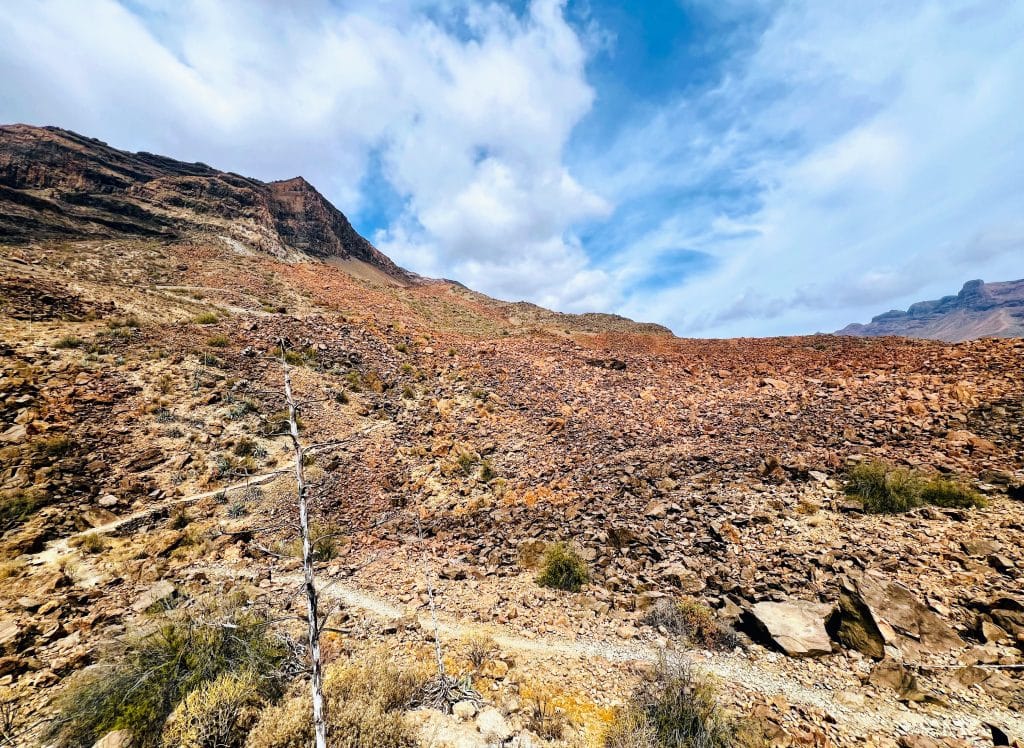 Por delante, una docena de kilómetros entre cardones gigantescos, tabaibas y vinagreras XXL. La pendiente, gradual y sostenida, se deja llevar hasta la boca de entrada a Arteara, el siguiente núcleo habitado tras dejar atrás el bullicio turístico de Maspalomas.
