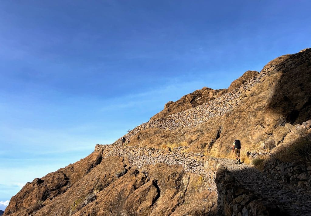 A estas alturas, quien firma esta crónica ya había recorrido este Camino en 2022 y recordaba que la etapa rumbo a la cumbre era un dispendio de belleza. Y vaya si lo es. A veces las segundas partes, como en El Padrino, resultan mejores: estos 17 kilómetros entre Tunte y la Cruz de Tejeda son, sencillamente, monumentales.