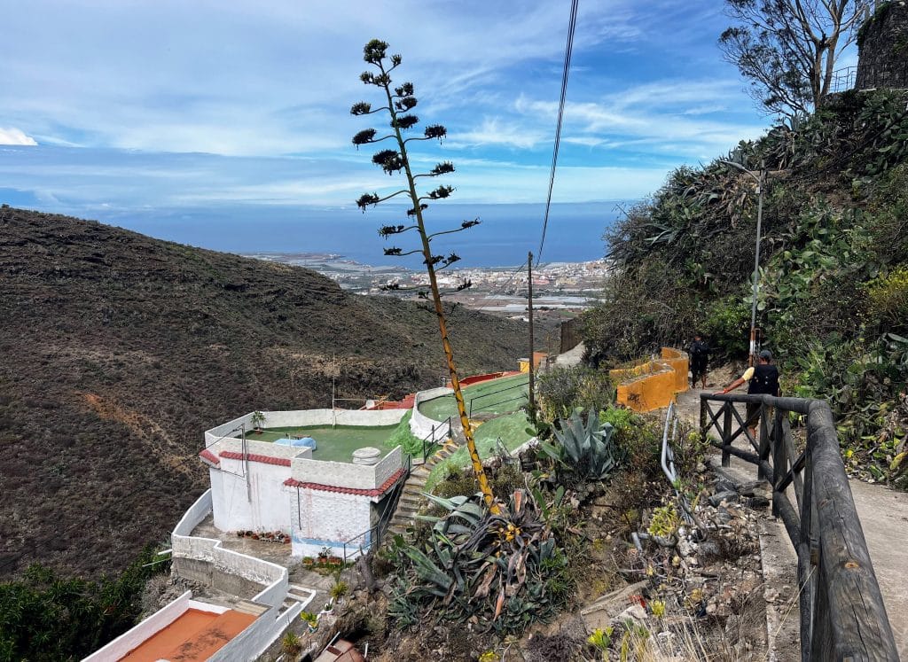 Las siguientes estaciones son la inenarrable Hoya de la Pineda y el pago de Anzofé, también conocido como Anzo. La vereda, además de pronunciada, es estrecha; hay que mantener un ojo en el camino y otro en el horizonte, que nos señala la cercana ciudad de Gáldar.